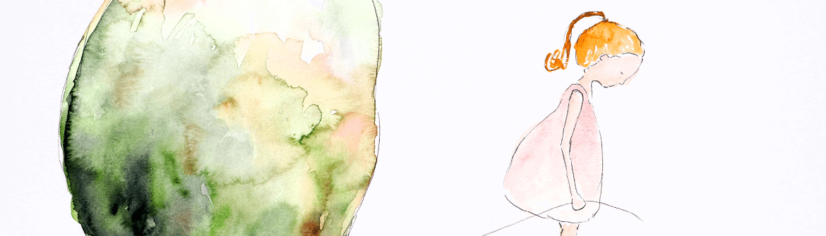 « Op pad met verdriet » est un livre sincère et authentique, illustré par des aquarelles évocatrices : le chagrin de Julie est symbolisé par un gros rocher, qu’elle emmène avec elle sur sa route.